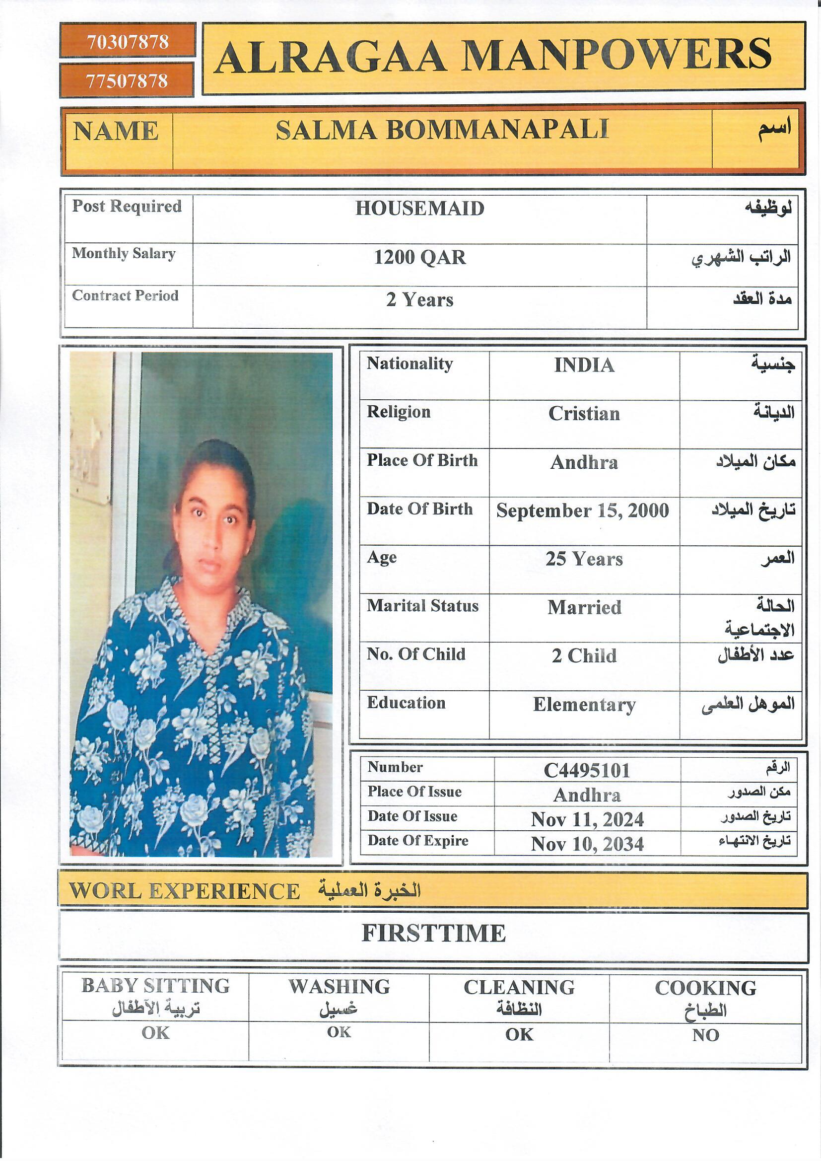 الاسم - عربي SALMA BOMMANAPALI