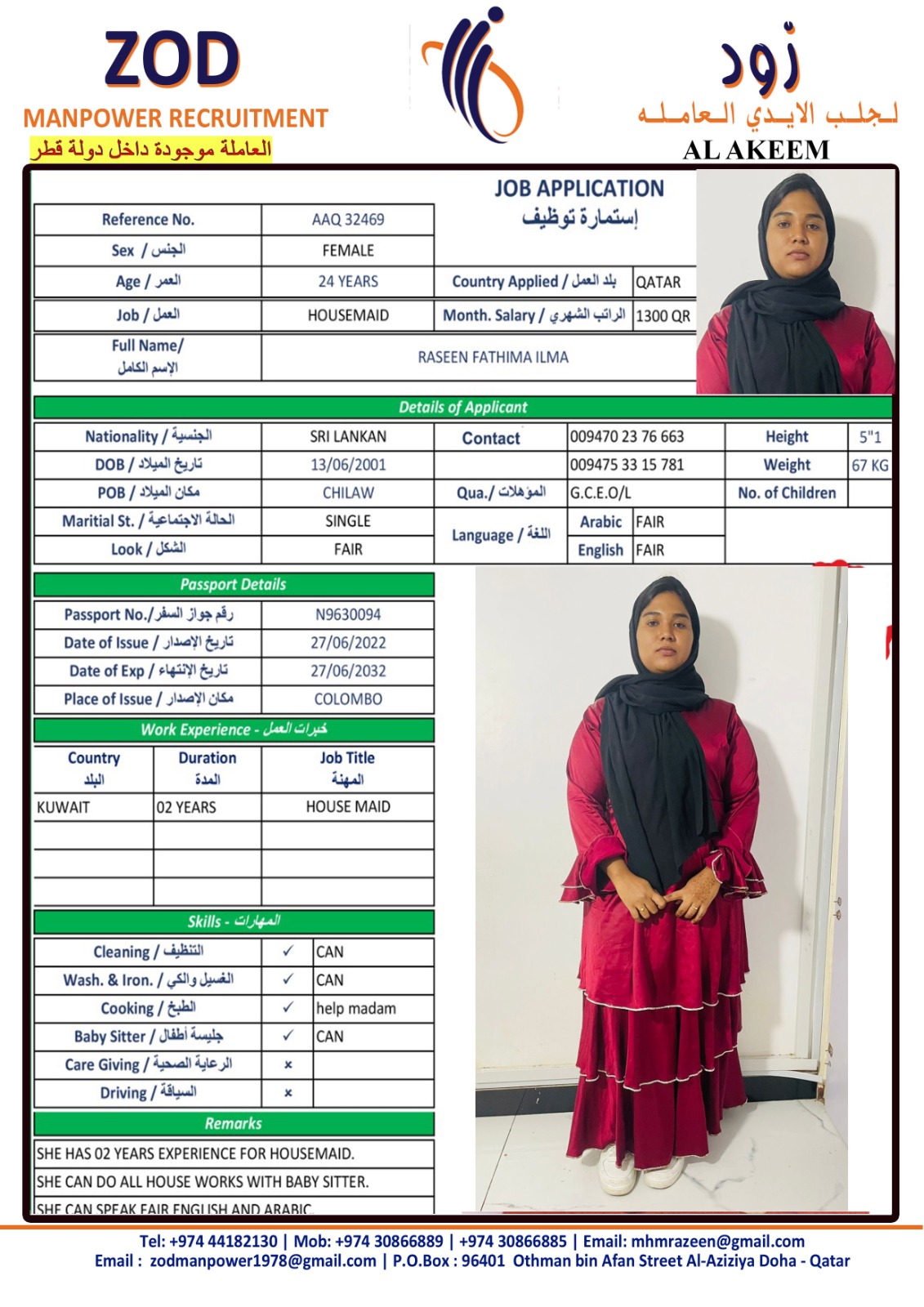 الاسم - عربي RASEEN FATHIMA ILMA