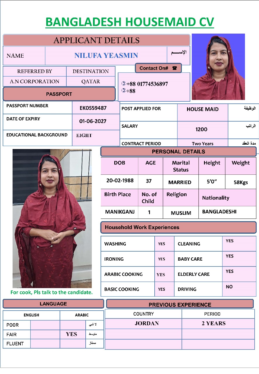 المهنة عاملة منزلية