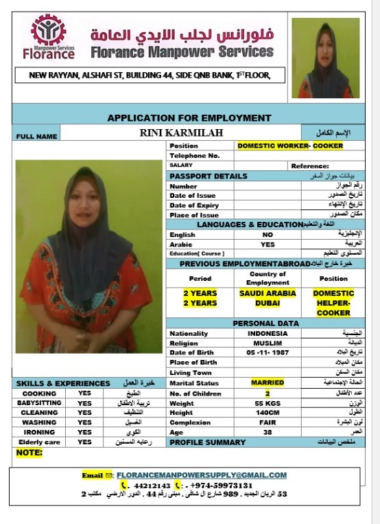 | الوظيفة | عاملة منزلية |