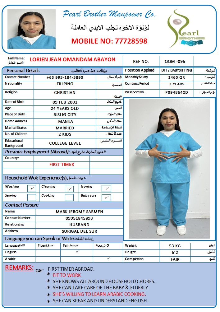 الاسم - عربي LORIEN OMANDAN ABAYON