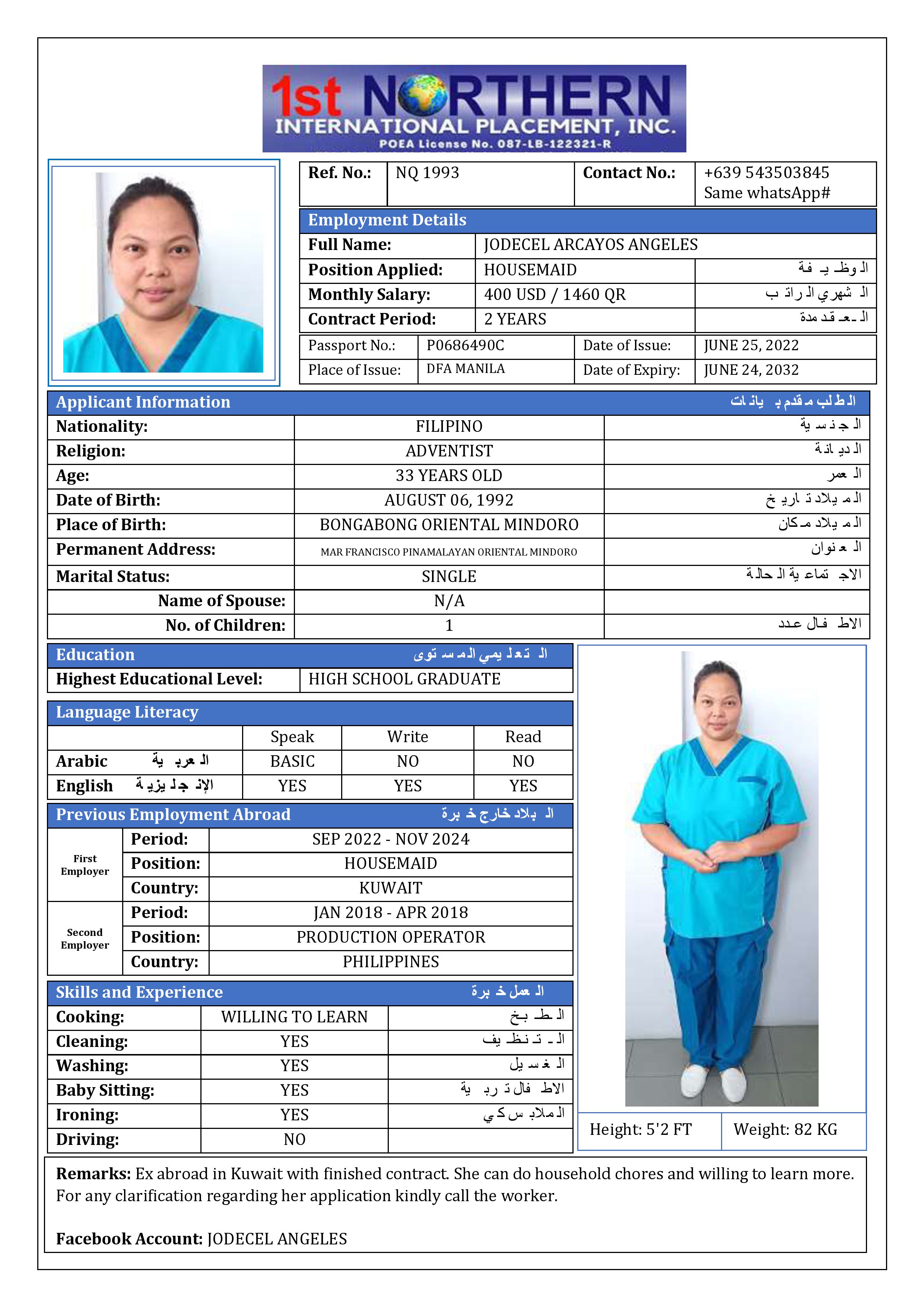 الاسم - عربي JODECEL ANGELES