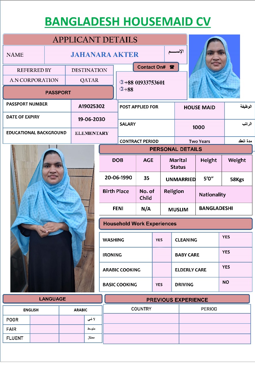 الاسم - عربي JAHANARA AKTER