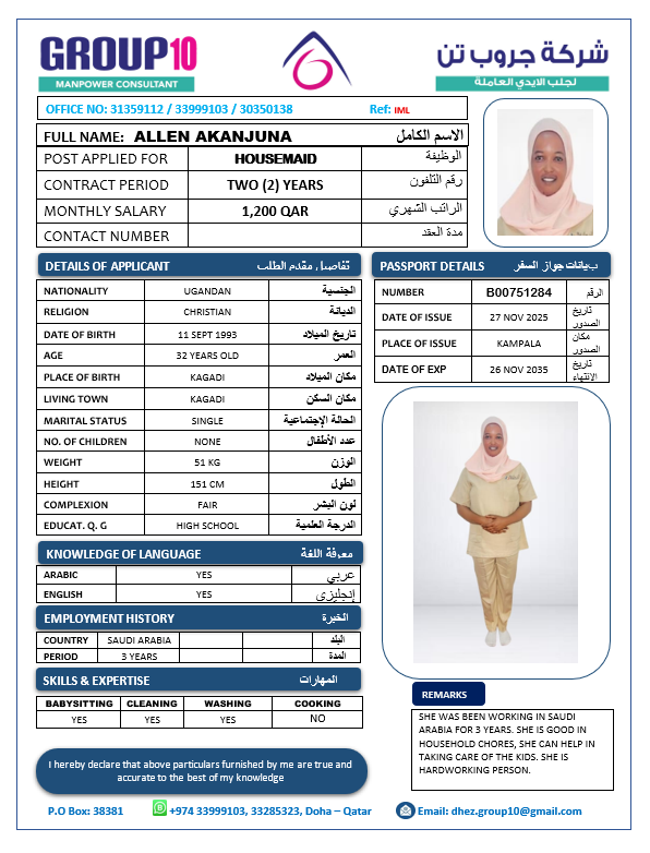 الاسم - عربي ALLEN AKANJUNA