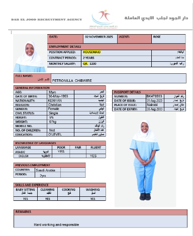 الاسم - عربي PETRONILLA CHIBWIRE