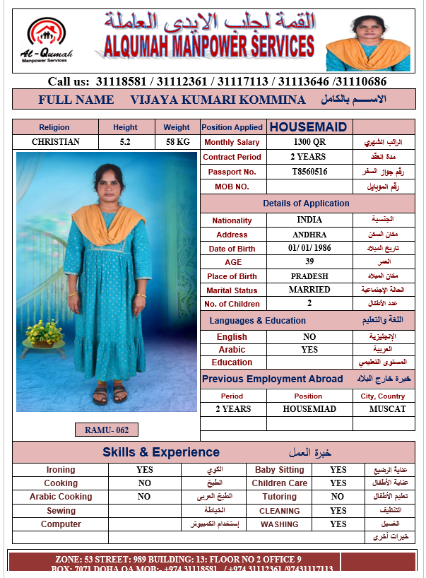 الاسم - عربي VIJAYA KUMARI KOMMINA
