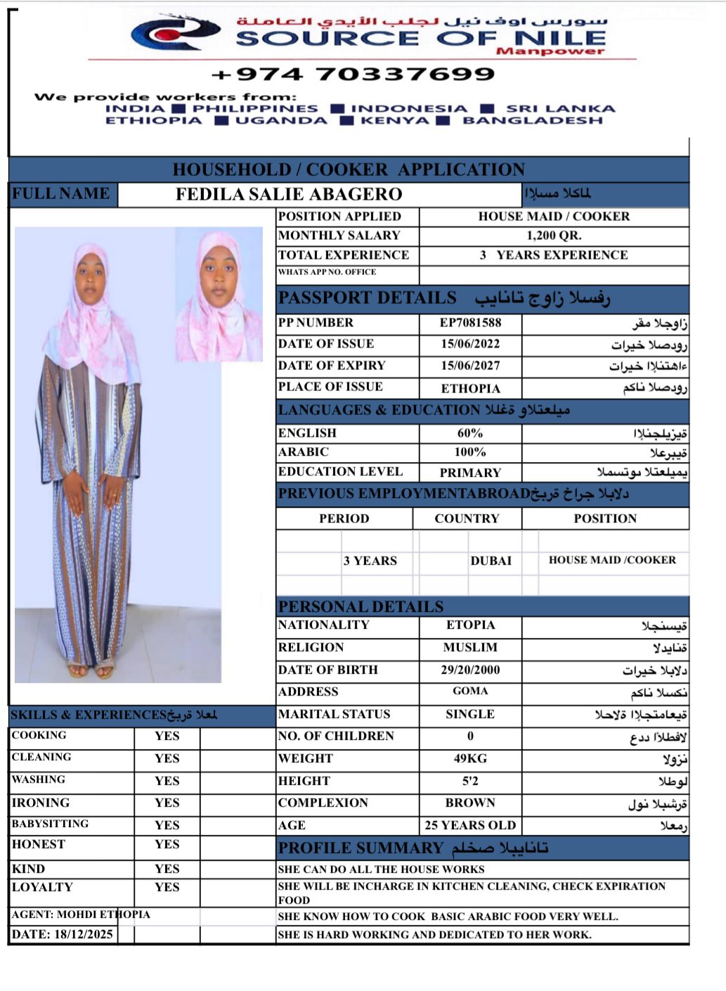 الاسم - عربي FEDILA SALIE ABAGERO