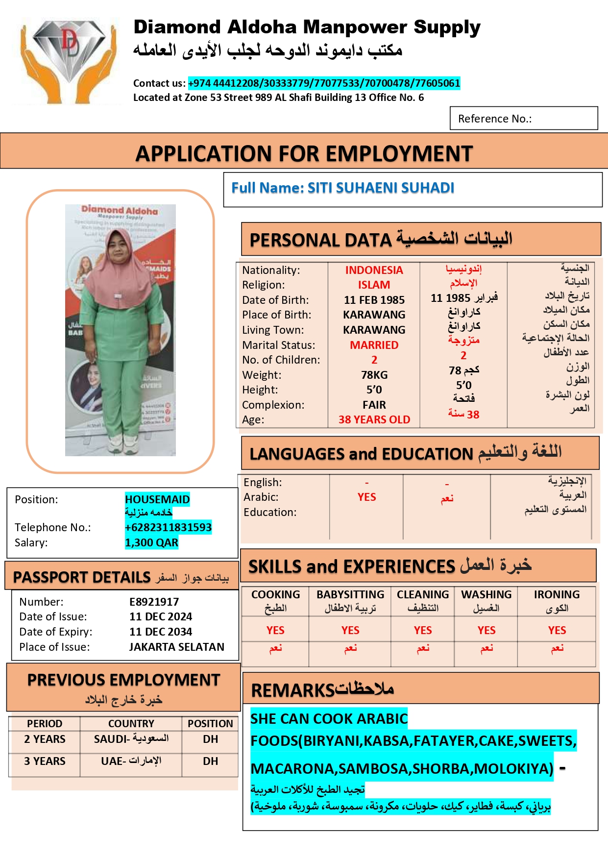 الاسم - عربي SITI SUHAENI BT SUHARI
