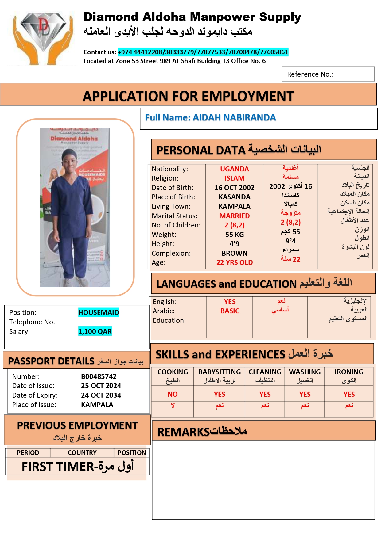 الشركة ‏ دايموند الدوحة لجلب الايدى العاملة