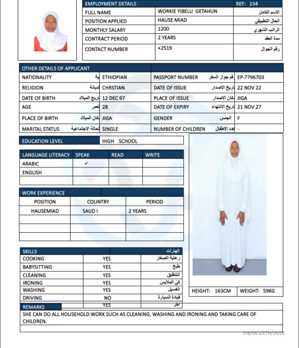 الاسم - عربي WORKIE YIBELU GETAHUN