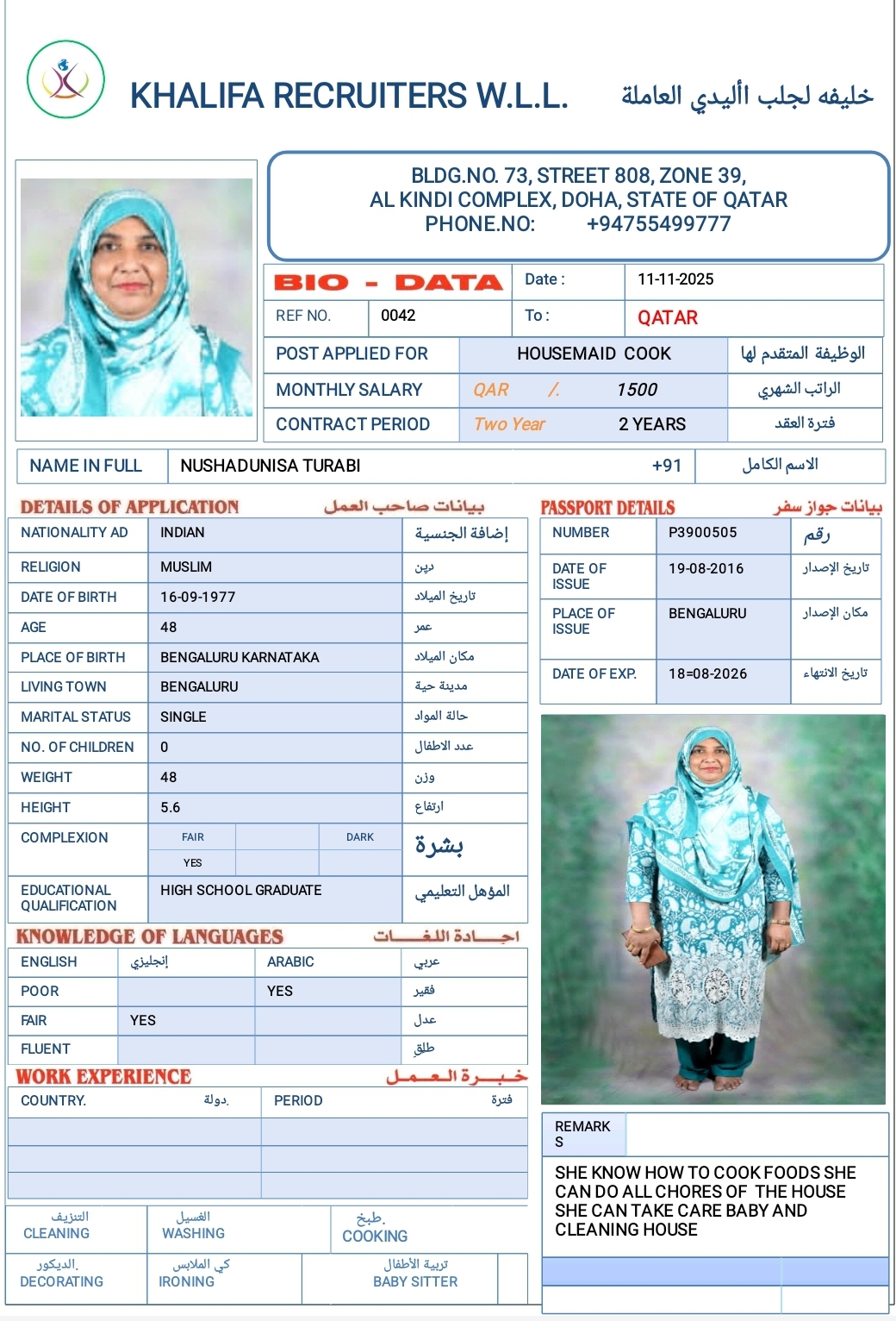 الاسم - عربي NUSHADUNISA TURABI