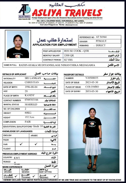 الاسم - عربي RATHNAYAKA MUDIYANSELAGE NIMANTHIKA MEDAGAMA