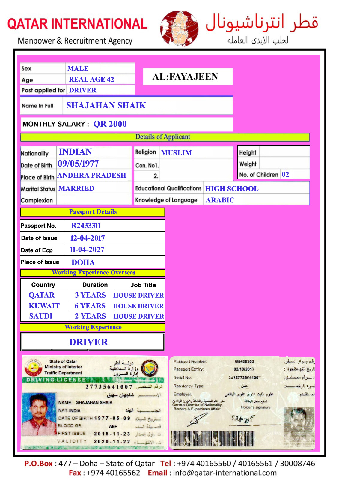الاسم - عربي SHAJAN SHAIK