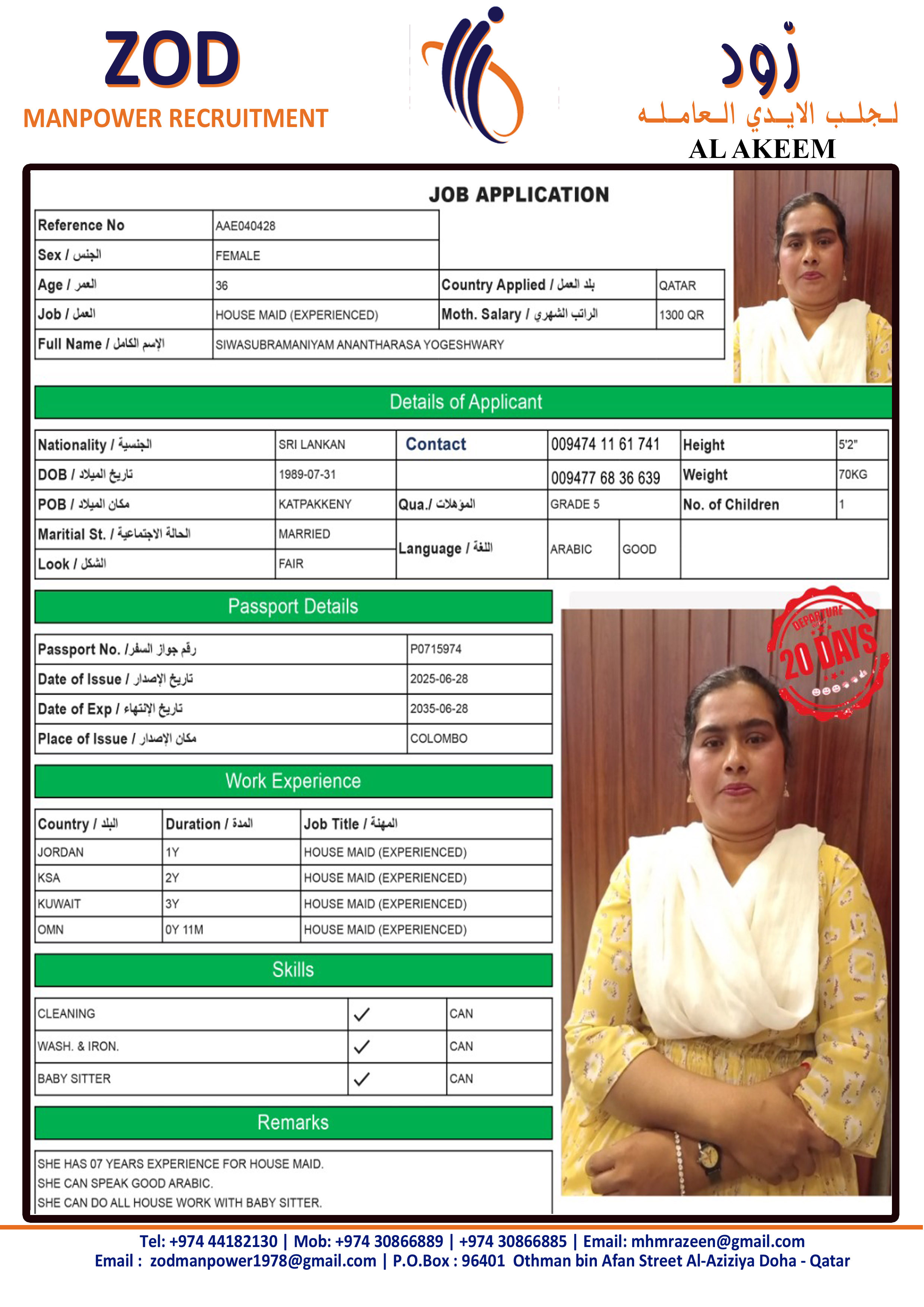 الاسم - عربي YOGESWARI ANANDARASA