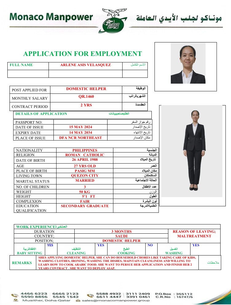 الاسم - عربي VELASQUEZ,ARLENE ASIS