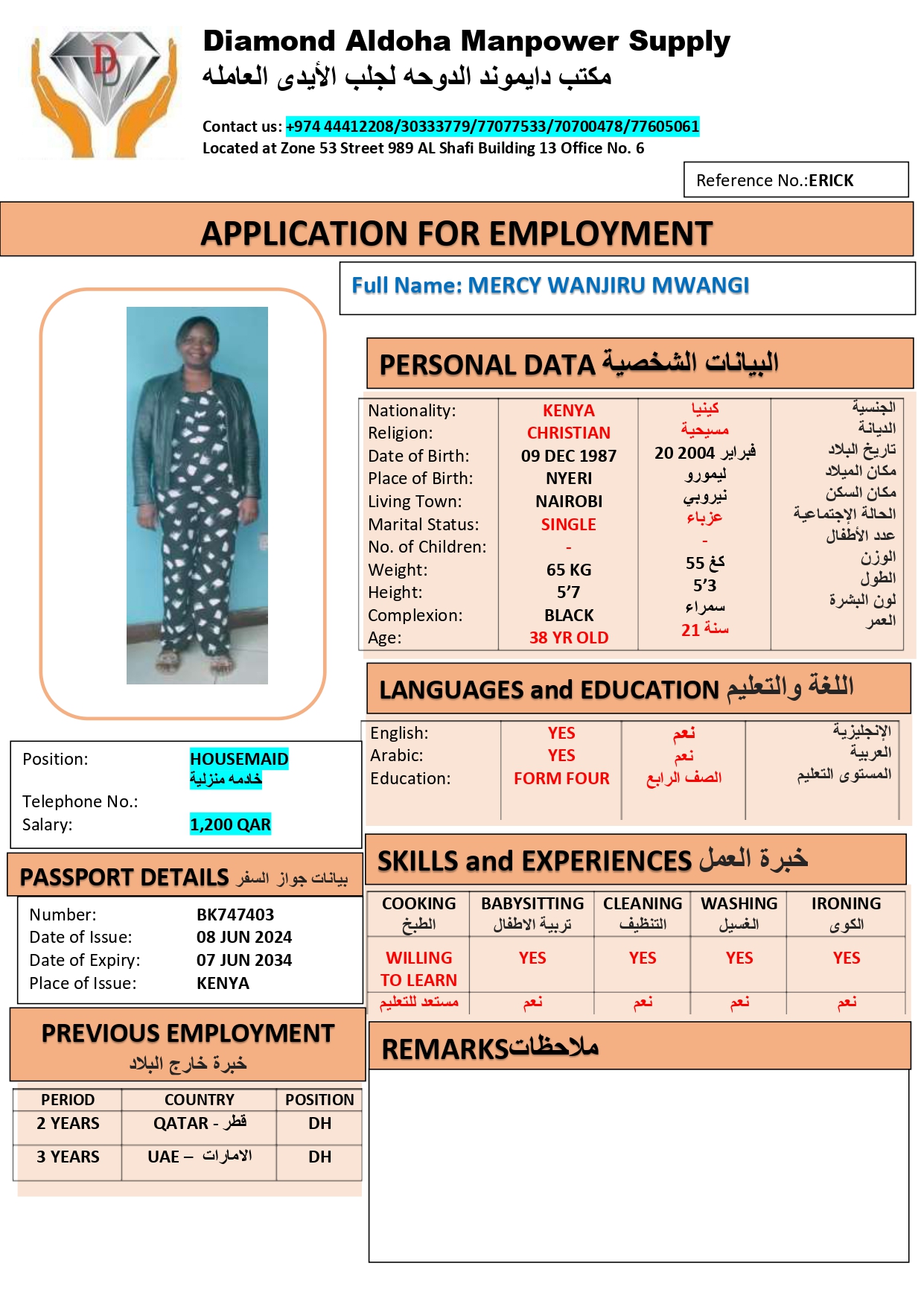الشركة ‏ دايموند الدوحة لجلب الايدى العاملة