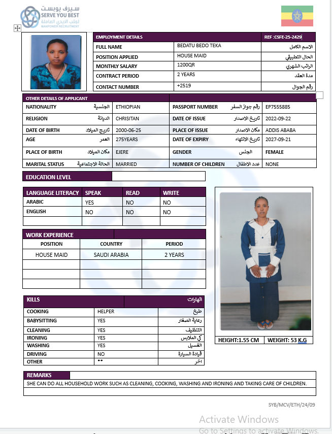 المهنة عاملة منزلية