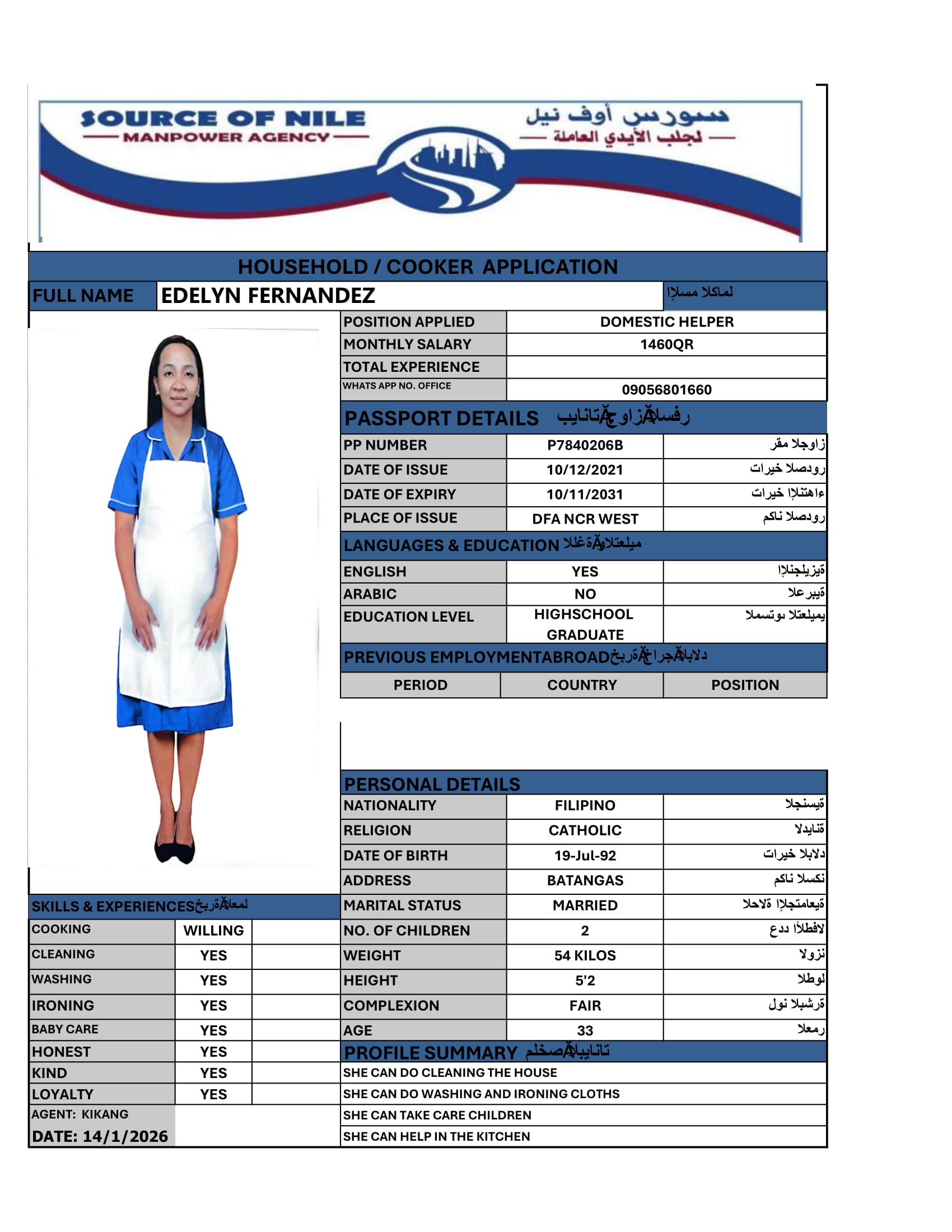 الاسم - عربي EDELYN FERNANDEZ