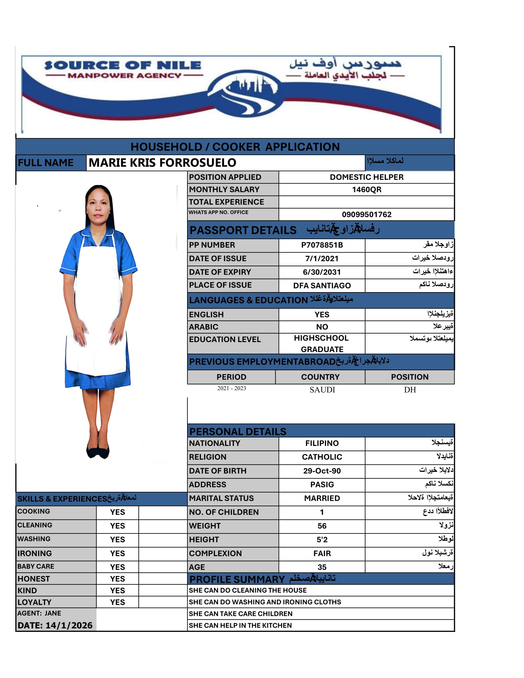 الاسم - عربي MARIE KRIS FORROSUELA