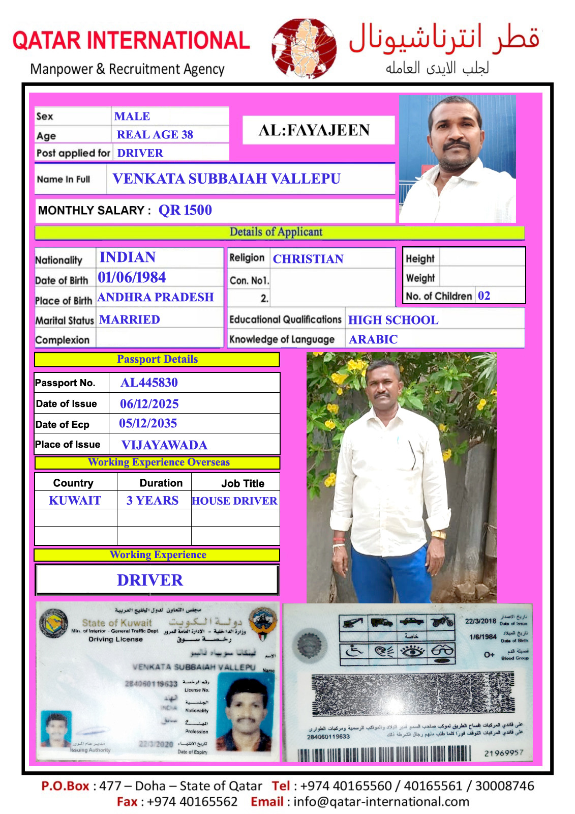 الاسم - عربي VENKATA SUBBAIHA