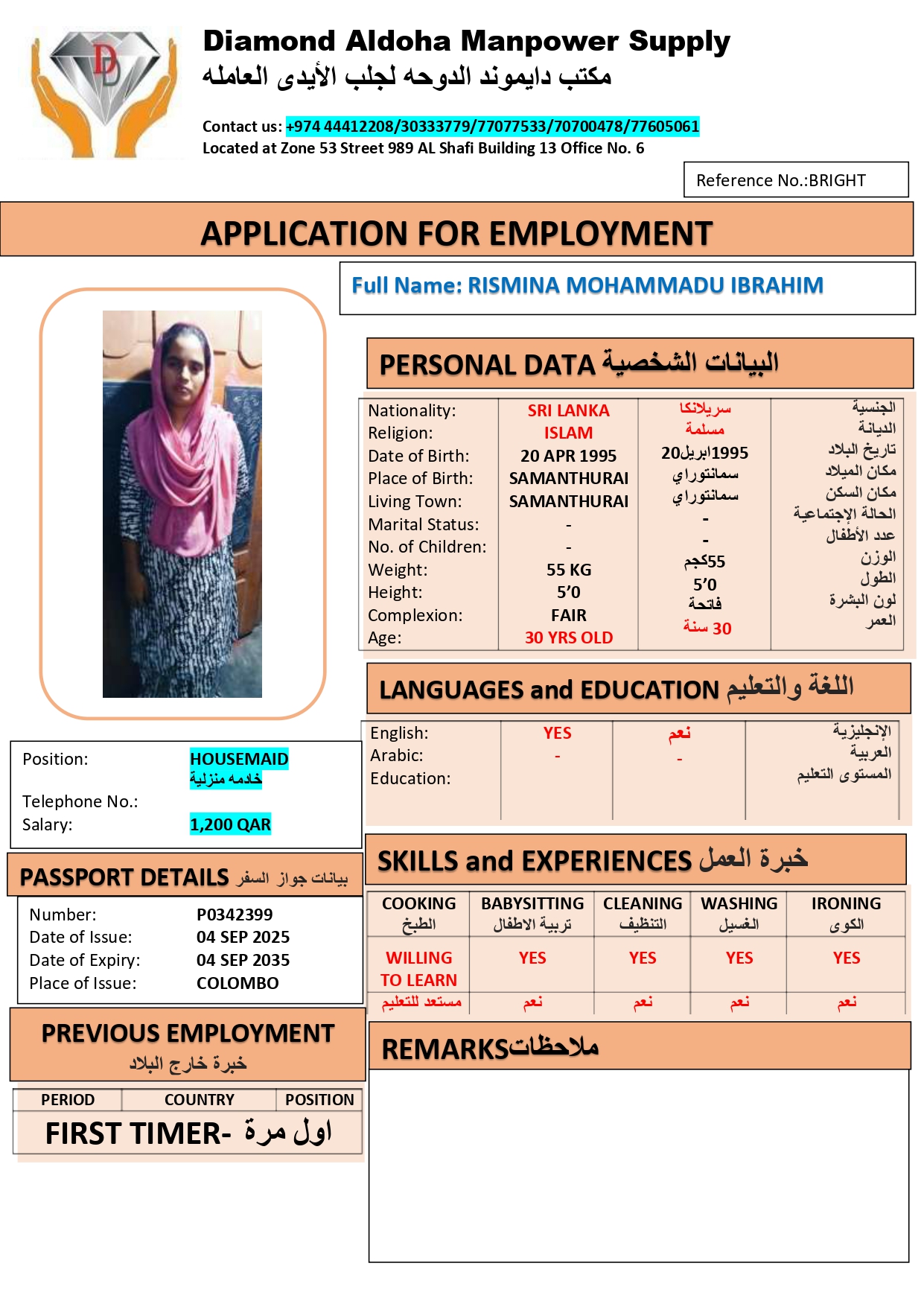 الاسم - عربي RISMINA MOHAMMADU IBRAHIM