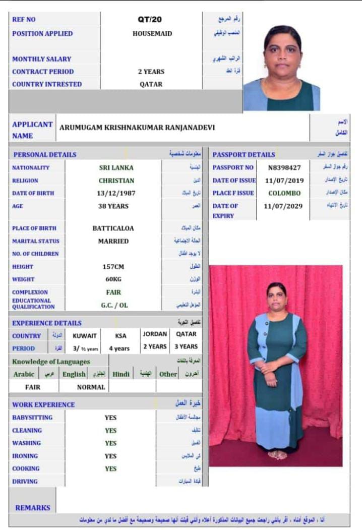 الاسم - عربي ARUMUGAM KRISHNAKUMAR RANJANADEVI