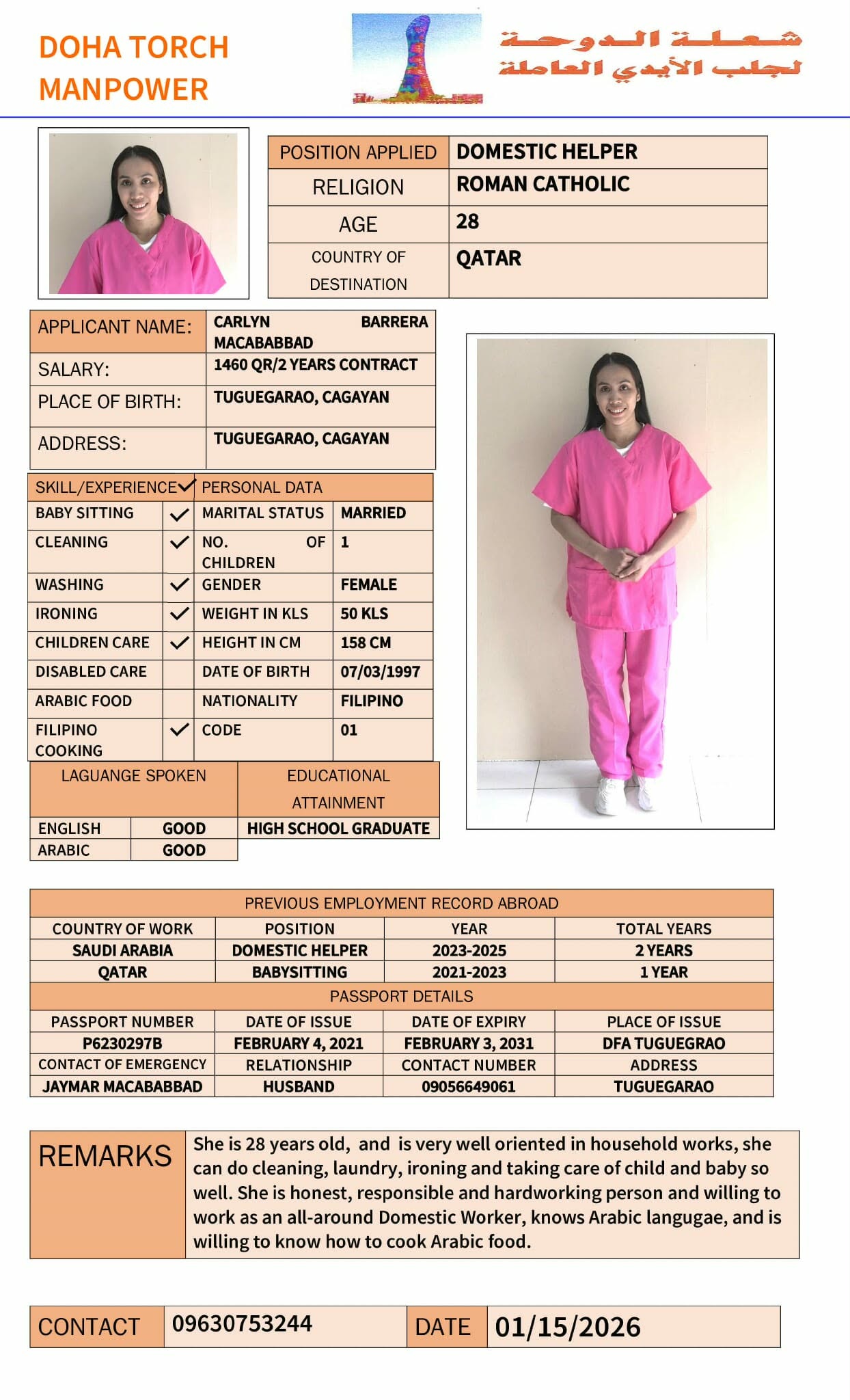 الاسم - عربي CARLYN MACABABBAD