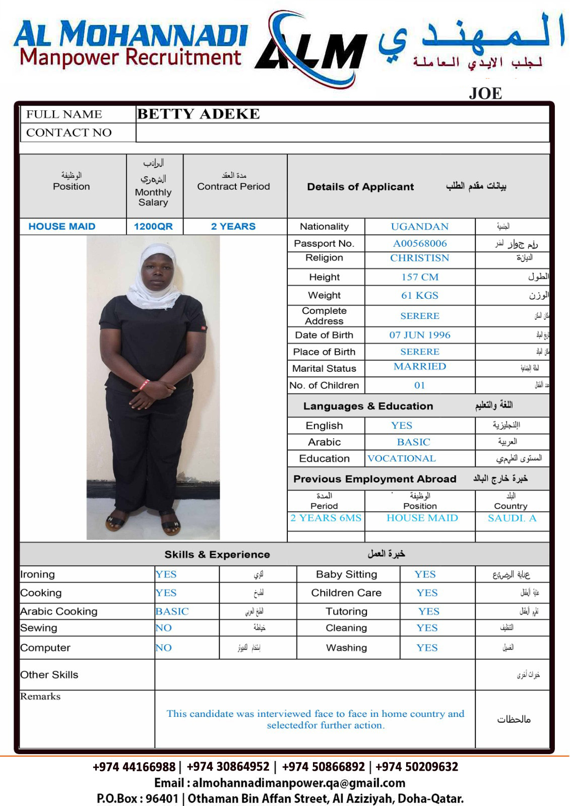 الاسم - عربي BETTY ADEKE