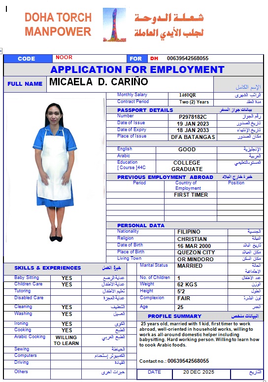 الاسم - عربي MICAELA D CARINO