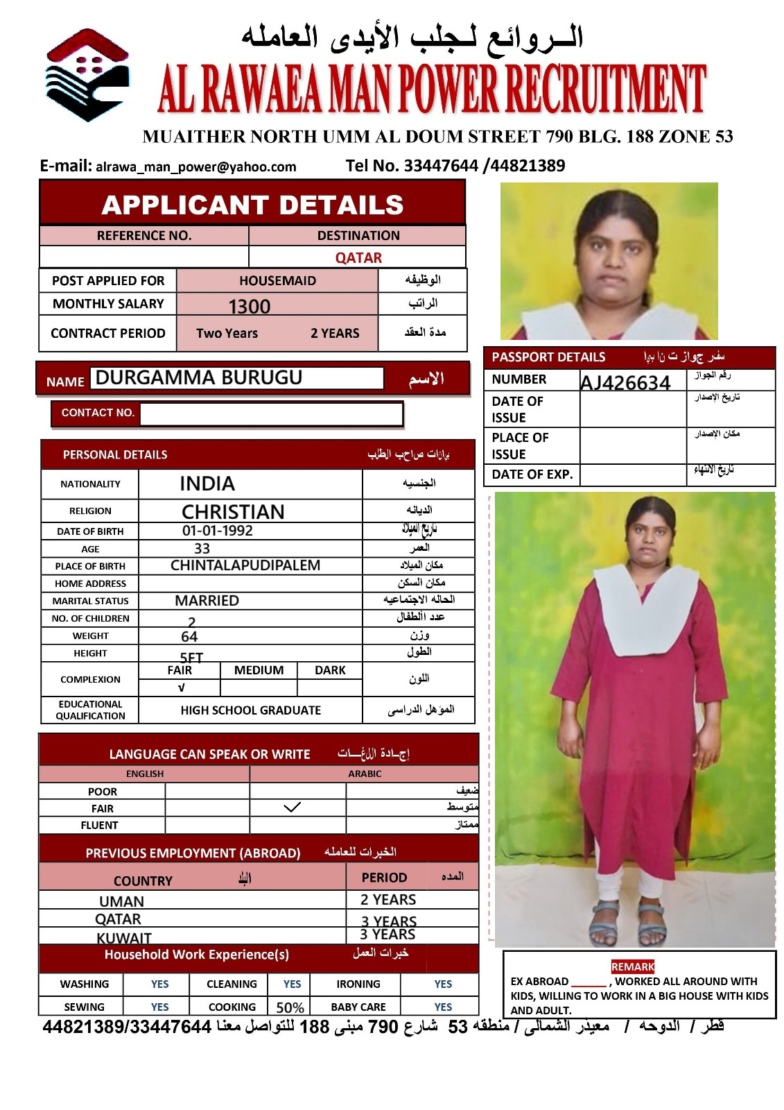 الاسم - عربي DURGAMMA DURGAMA JUA