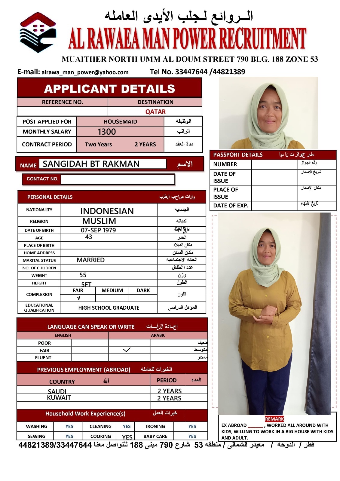 الاسم - عربي SANGIDAH BT RAKMAN SD