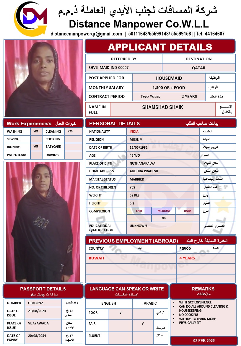 الشركة ‏ المسافات لجلب الايدي العاملة H