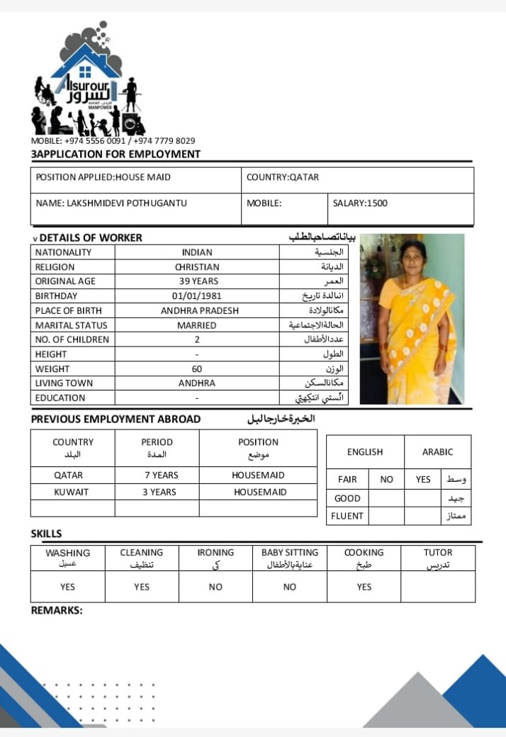 الاسم - عربي LAKSHMIDEVI POTHUGANTU