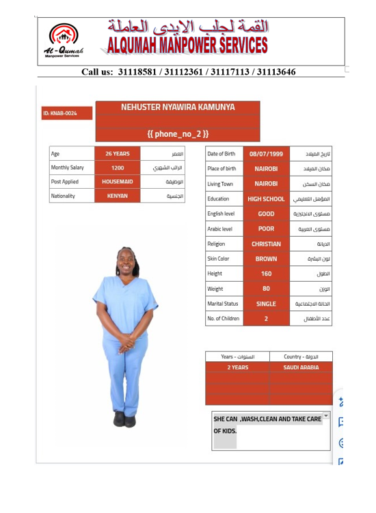 الاسم - عربي NEHUSTER NYAWIRA KAMLINYA
