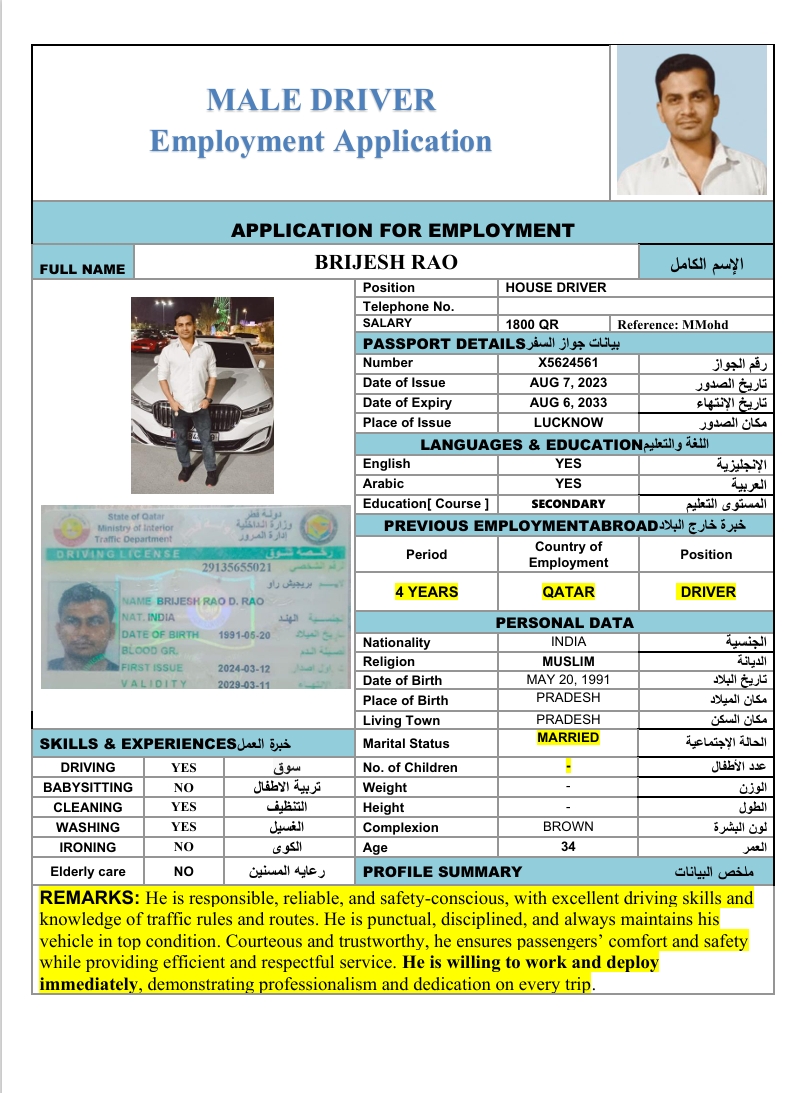سائق هندي خبرة قطر ليسن قطري طلب استقدام