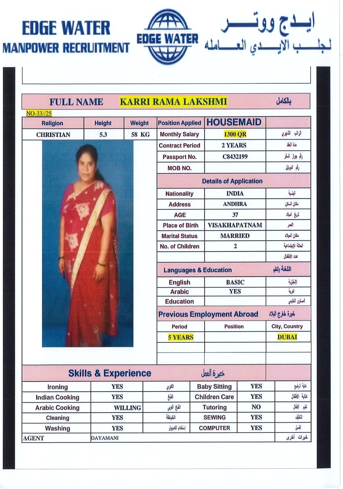 الاسم - عربي KARRI RAMI LAKSHMI