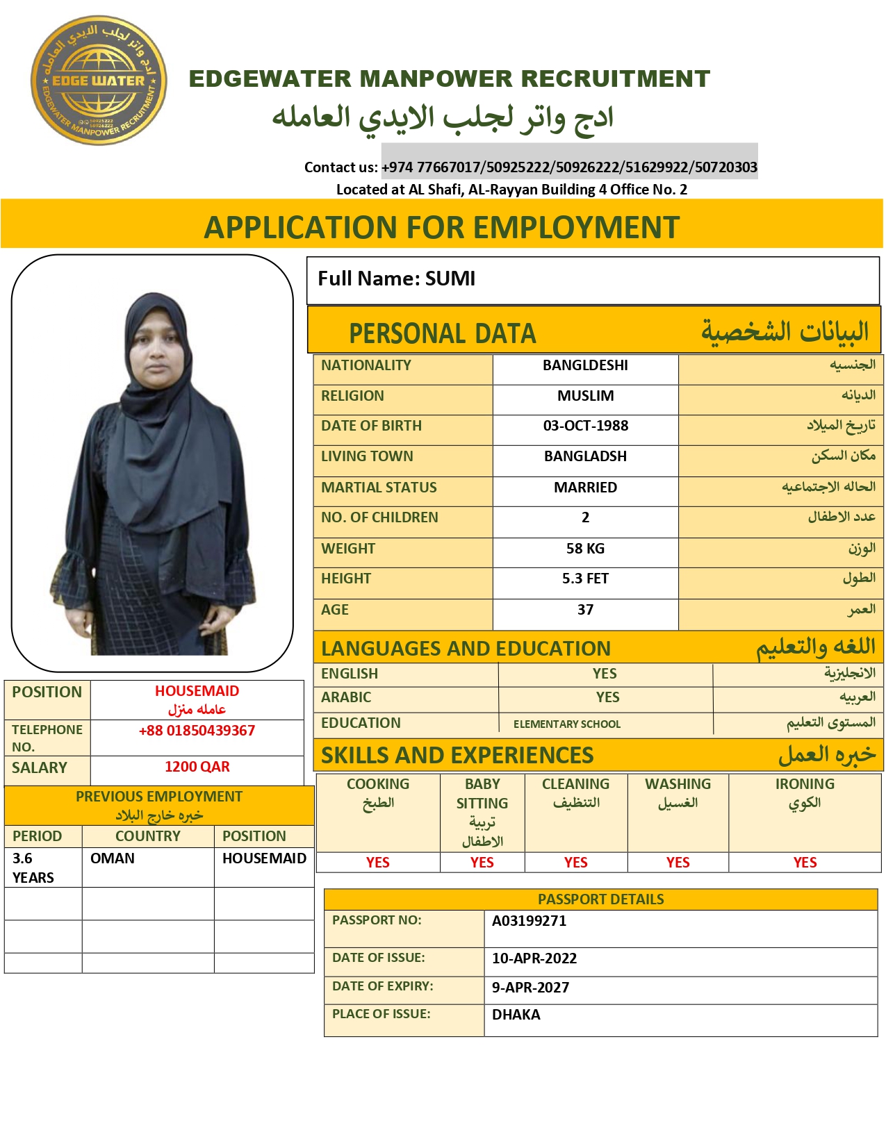 بيانات العامل