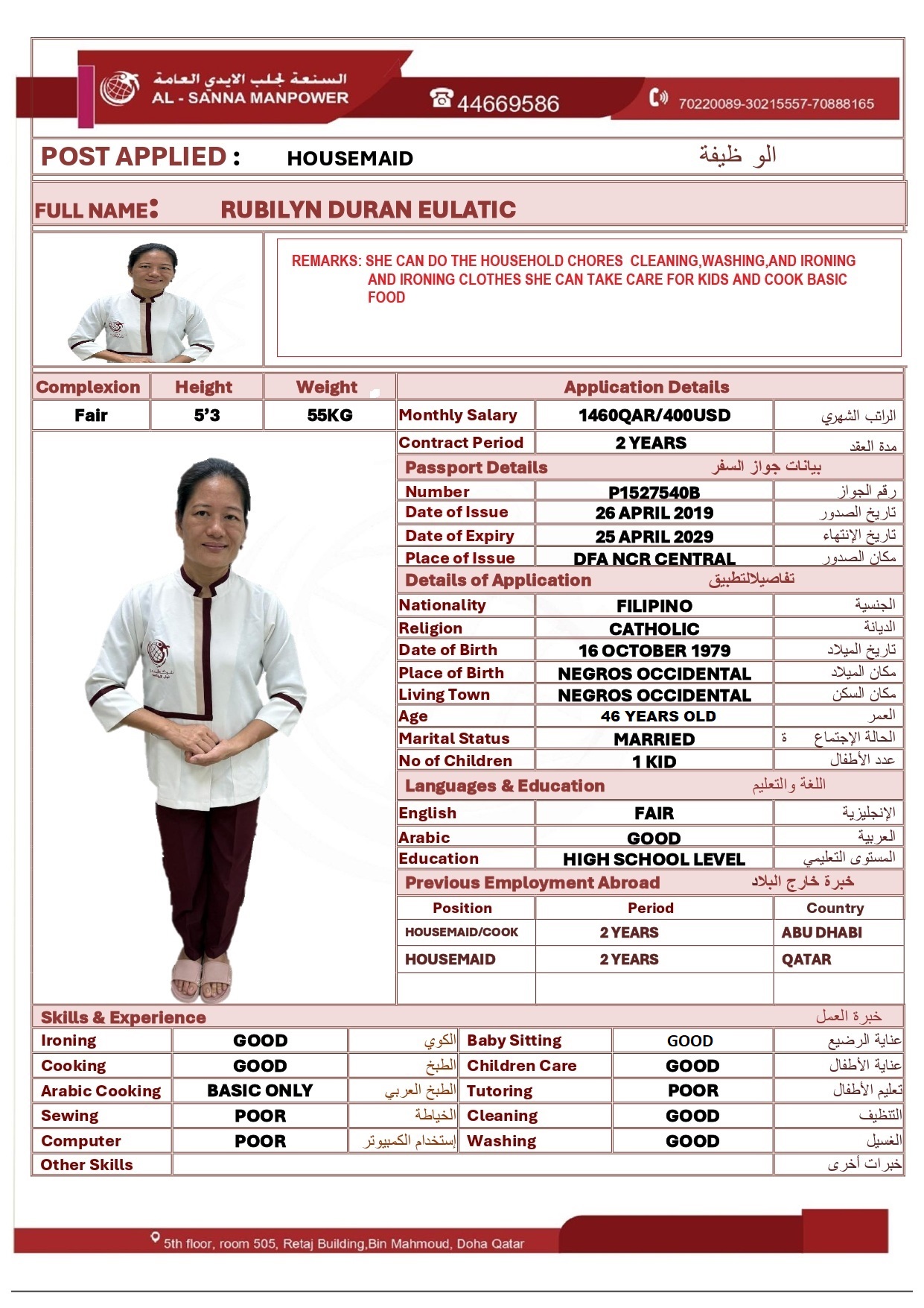 الاسم - عربي RUBILYN DURAN EULATIC