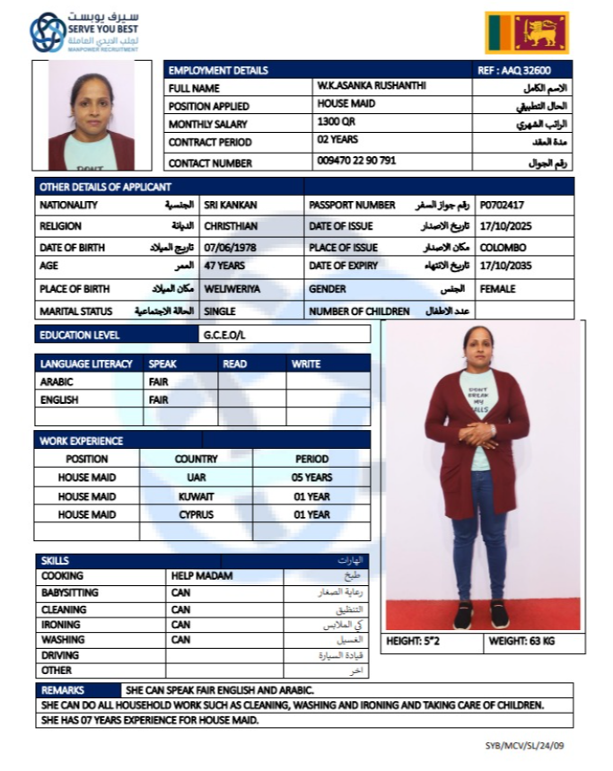 الاسم - عربي W.K .ASANKA RUSHANTHI
