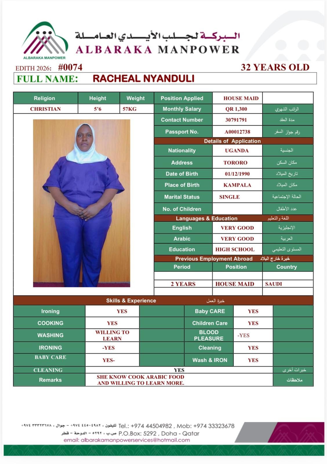 الاسم - عربي RACHAEL NANJOVU