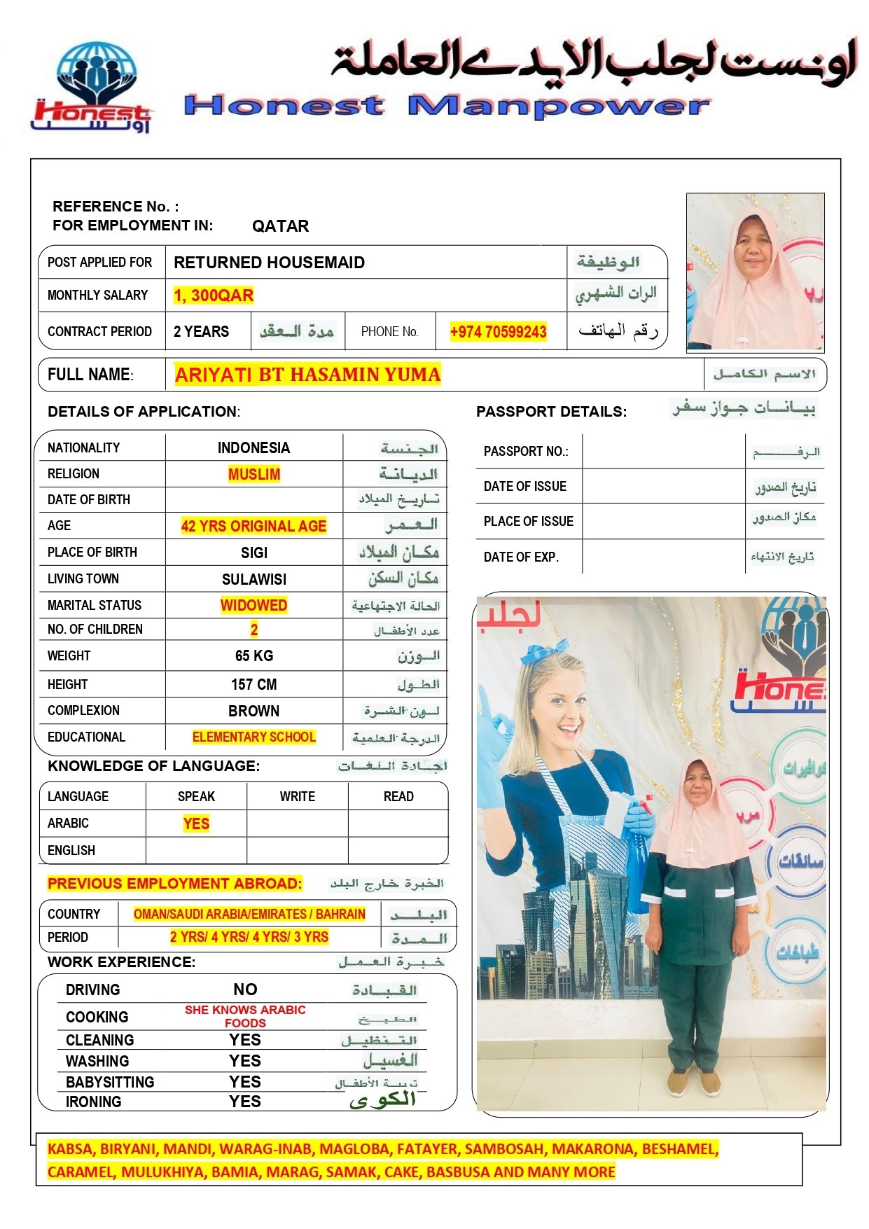 الاسم - عربي ARIYATI HASAMIN YUMA
