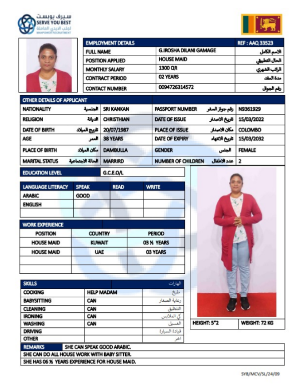 الجنسية سريلانكا