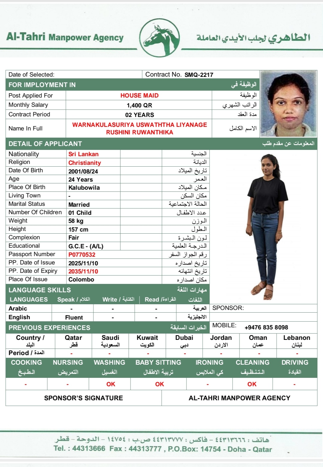 الجنسية سريلانكا