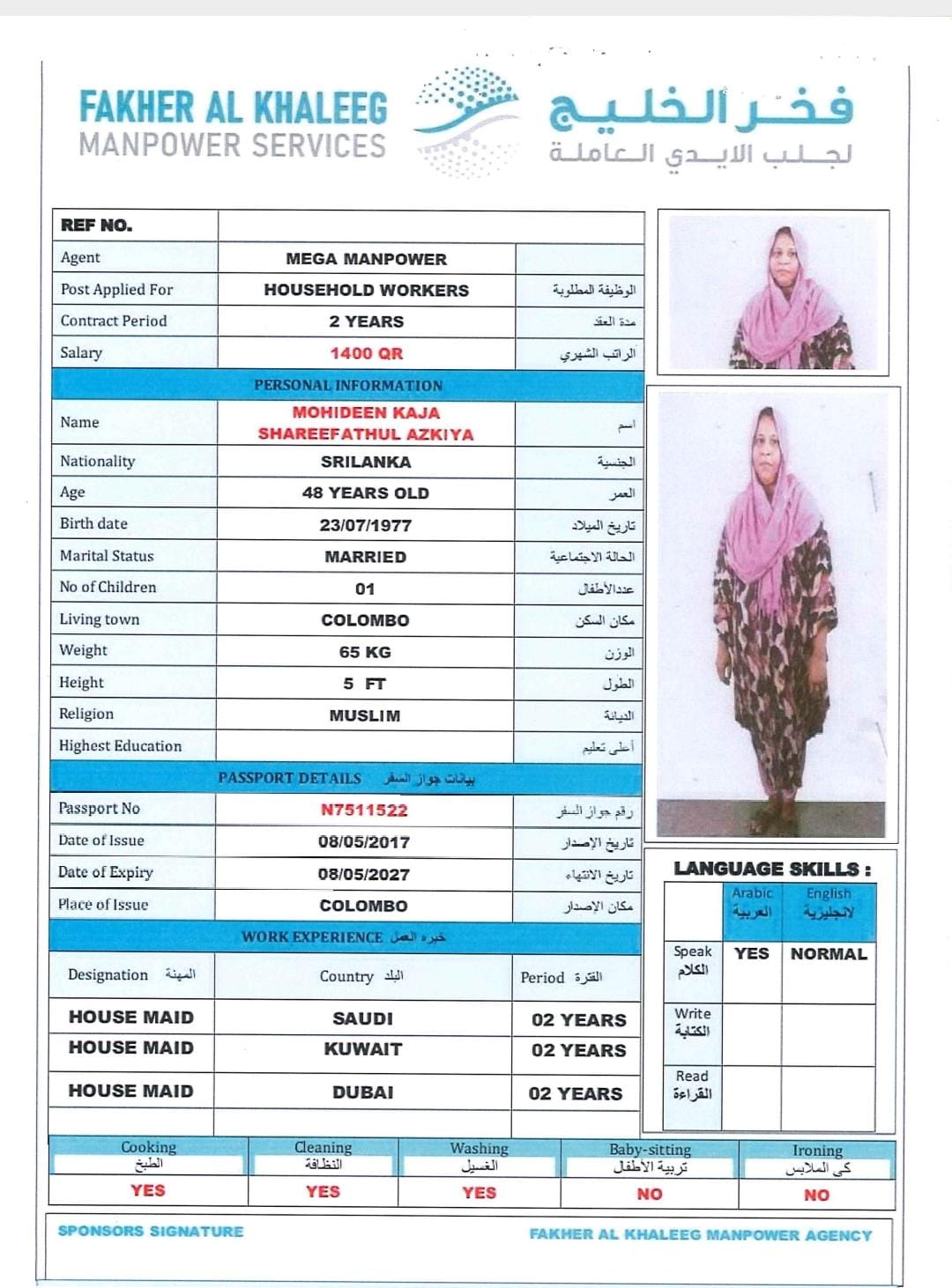 الجنسية سريلانكا