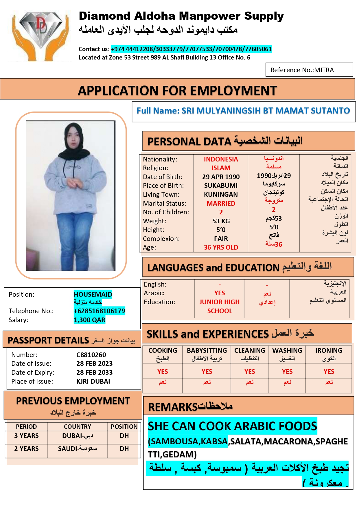 الاسم - عربي SRI MULYANINGSIH BT MAMAT SUTANTO