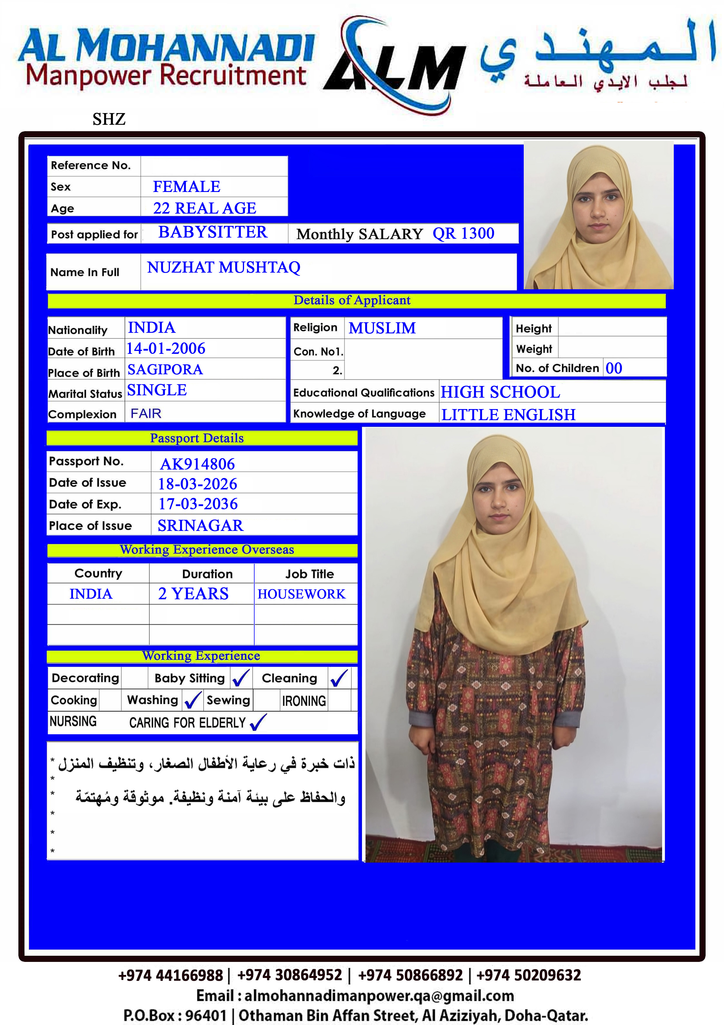 الاسم - عربي NUZHAT MUSHTAQ