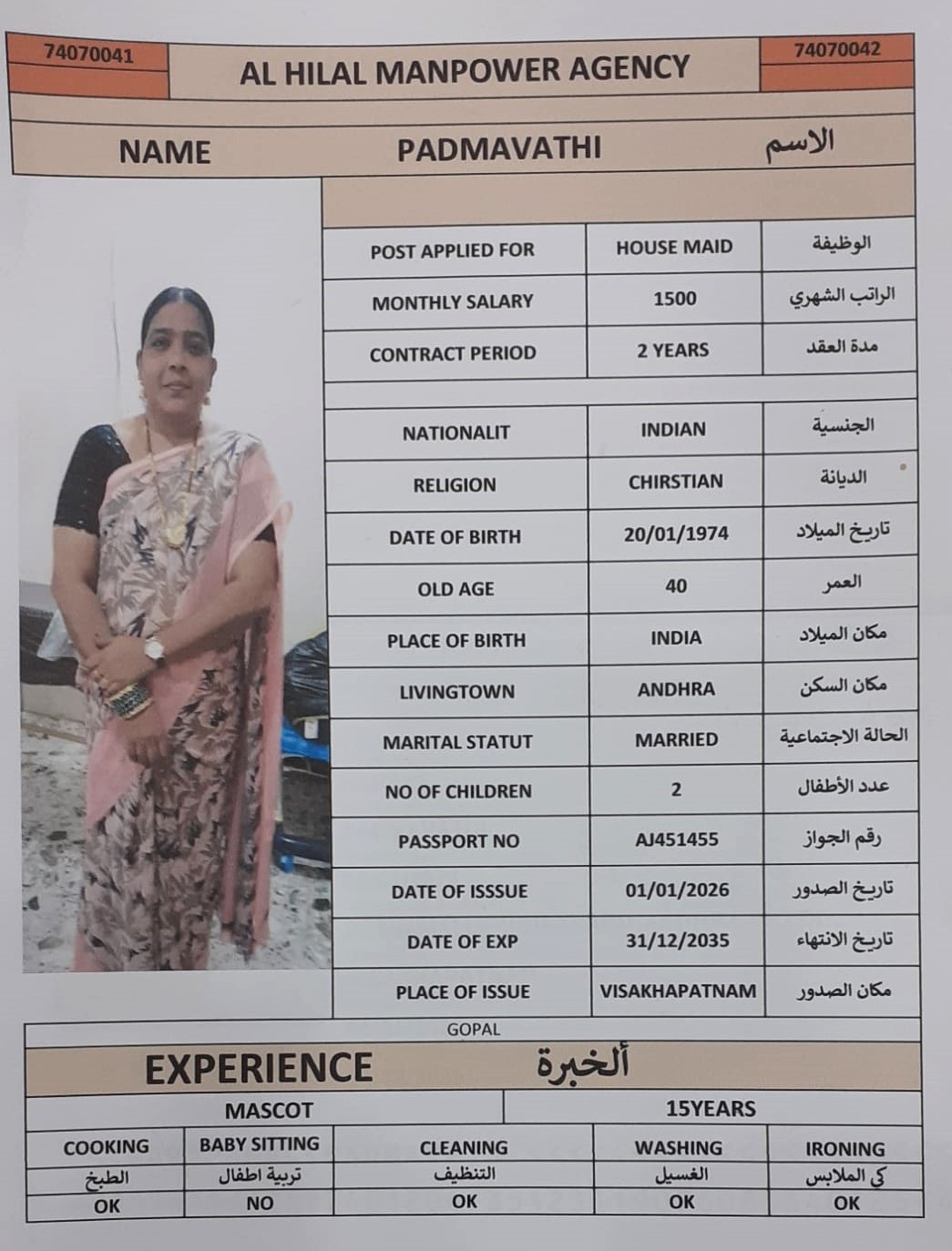 VIJAYA KUMARI / AVAILABLE IN DOHA Domestic worker - India