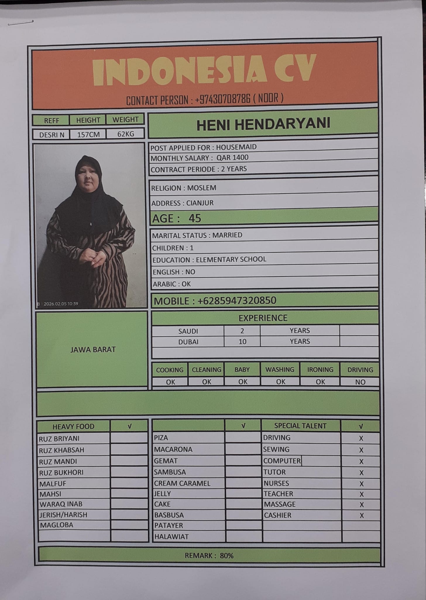 SRIYATI BT SUTRISNO SURYA Cook - Indonesia