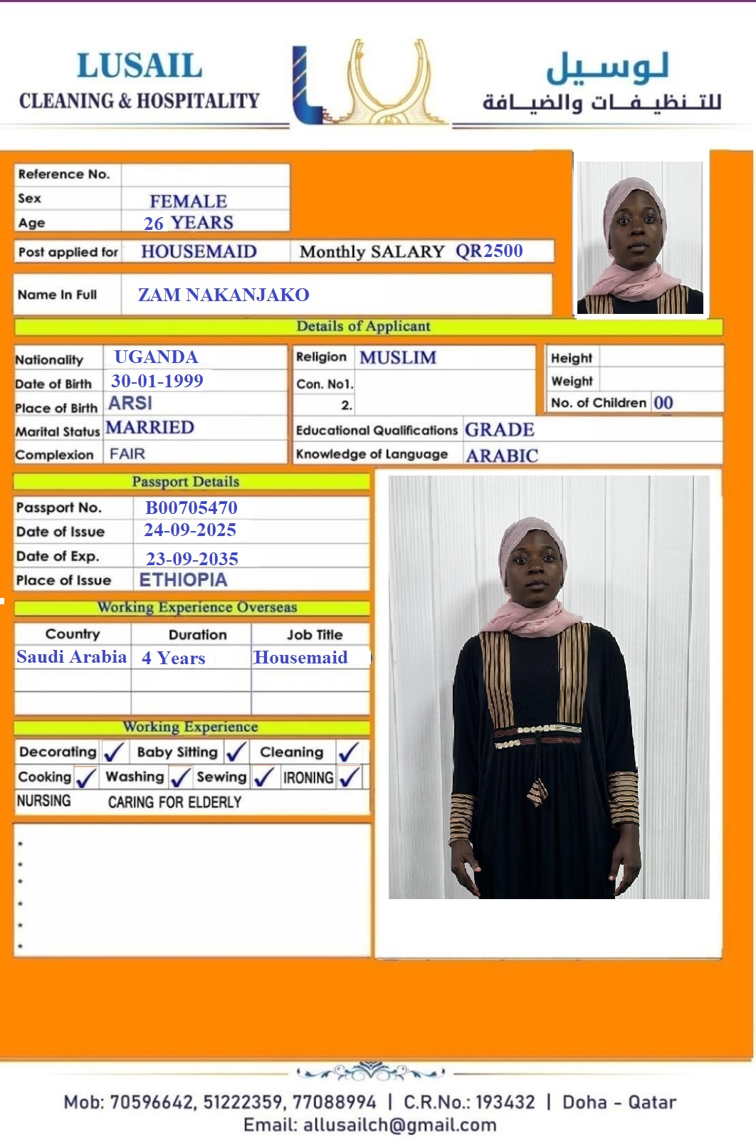 SHAMSIYAA MAMO GADAA Domestic worker - Ethiopia
