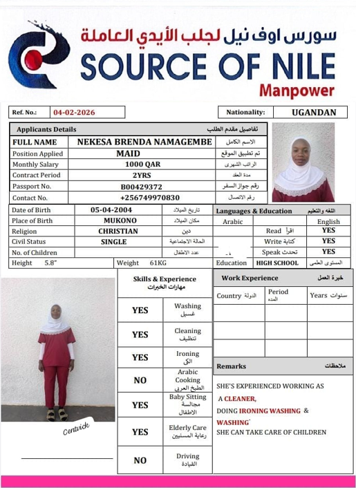 KYOMUGASHO ZAHRA Domestic worker - Uganda